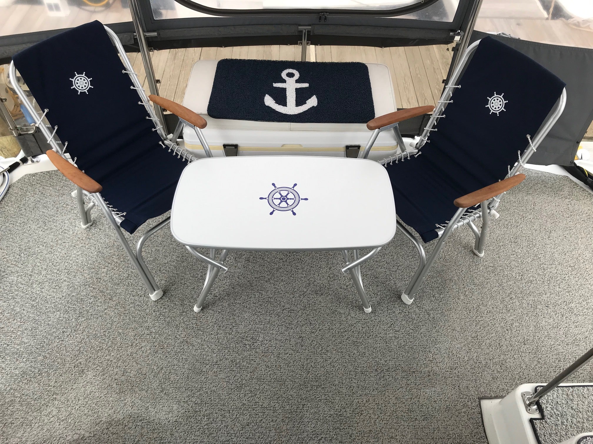 Folding Aluminum and Melamine Top Boat Table 50.5 x 89 x 61 cm-M250