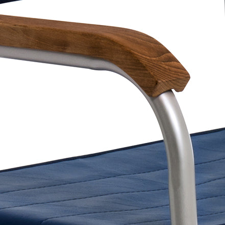The textilene material is a PVC coated polyester non stretch yarn. The fabric is very strong, 580gr/m2 and can support up to 120 kg weight. The fabric is able to withstand compression efforts, atmospheric agents, rips and UV rays. The textilene fabrics allow water to drip through it so it is ideal for people sitting with wet suits. Furthermore it is easily cleaned and requires minimal